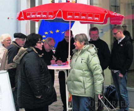 Einige Bad Säckinger Bürger haben am Samstag von der Möglichkeit Gebrauch gemacht, gegen die Privatisierung der Wasserversorgung durch die EU zu protestieren. Sie kamen zum Stand des SPD-Ortsverbandes in der Schützenstraße, der vom Vorsitzenden Manuel Knapp kompetent besetzt war.